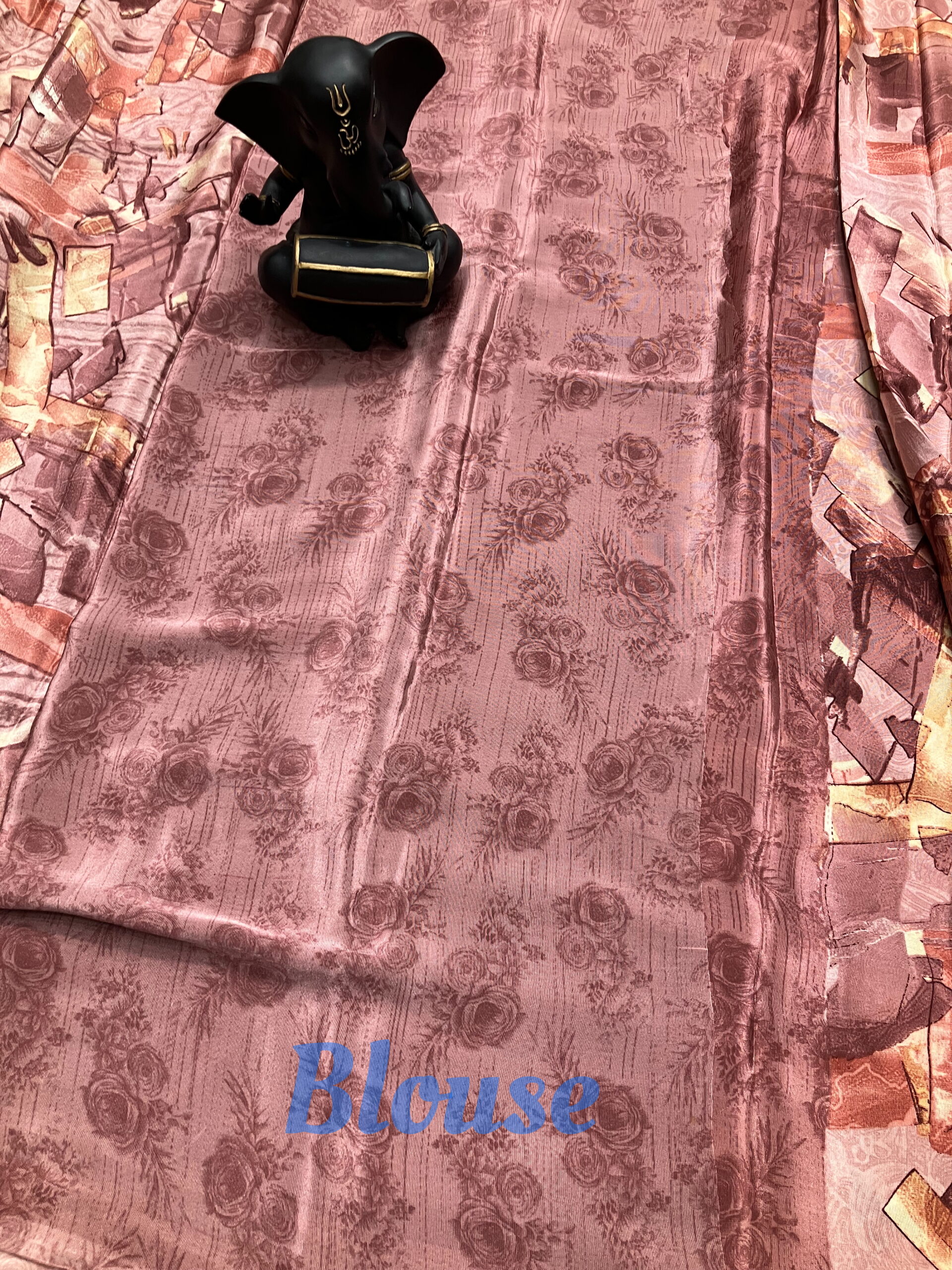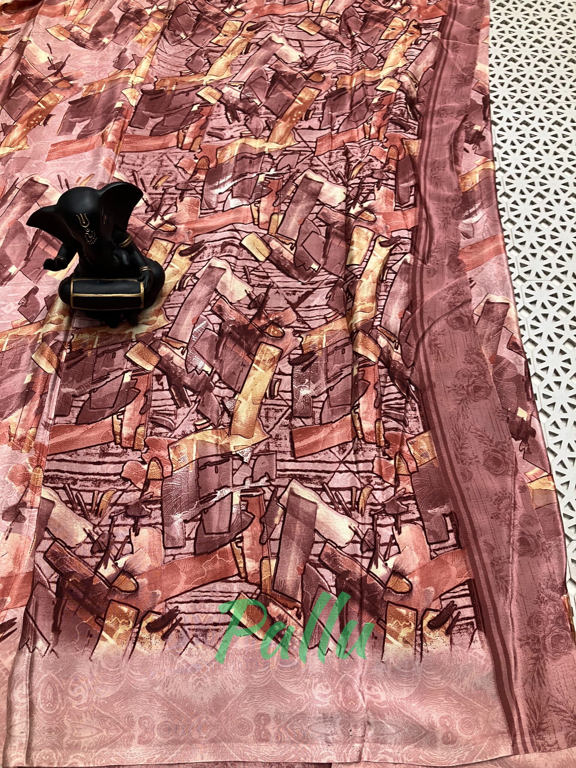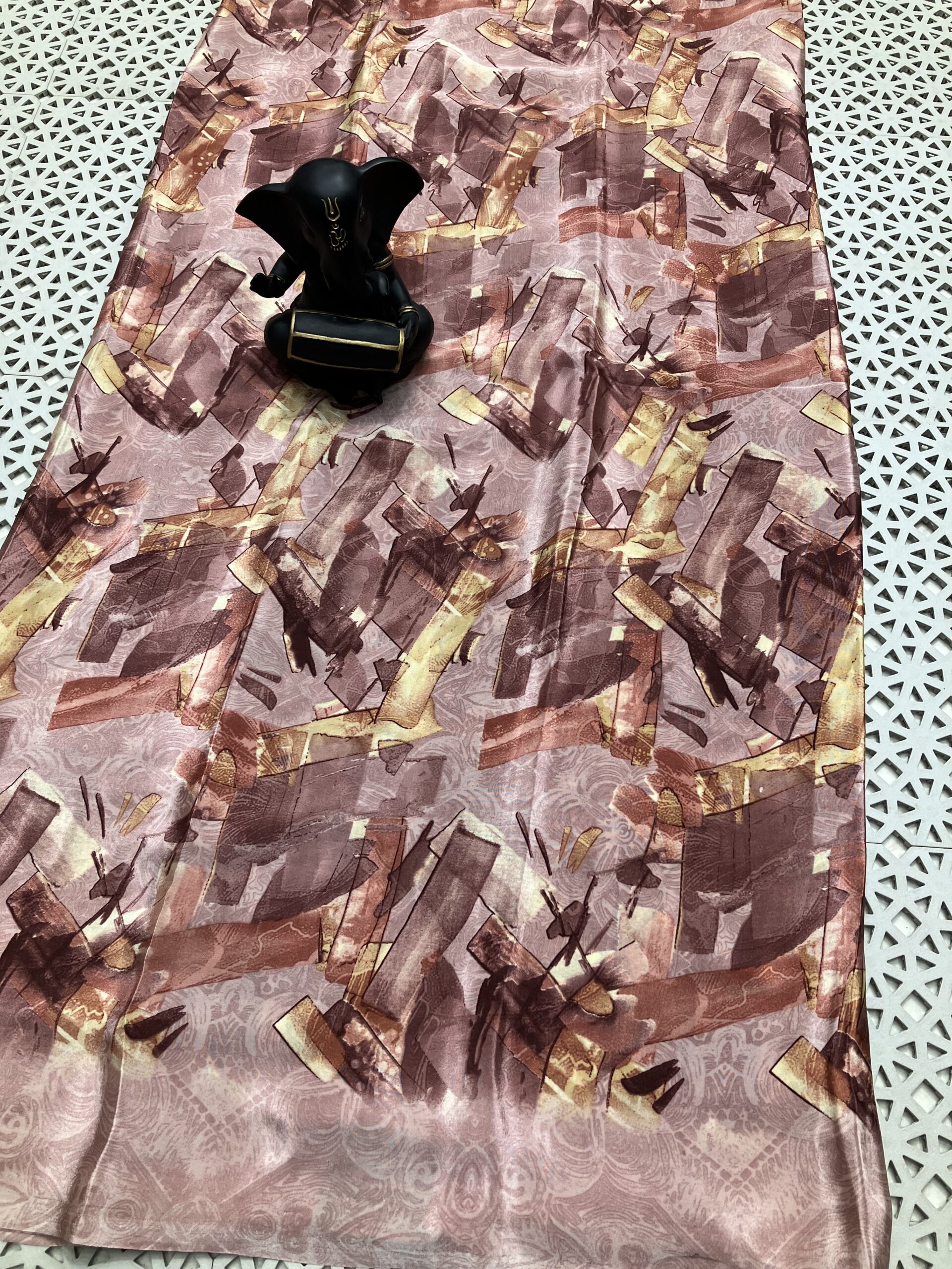Add a touch of artistic elegance to your wardrobe with this beautiful soft saree featuring a contemporary abstract print. Designed in rich rosewood and dusty pink tones, the saree is accentuated with warm golden highlights that create a graceful, modern look.