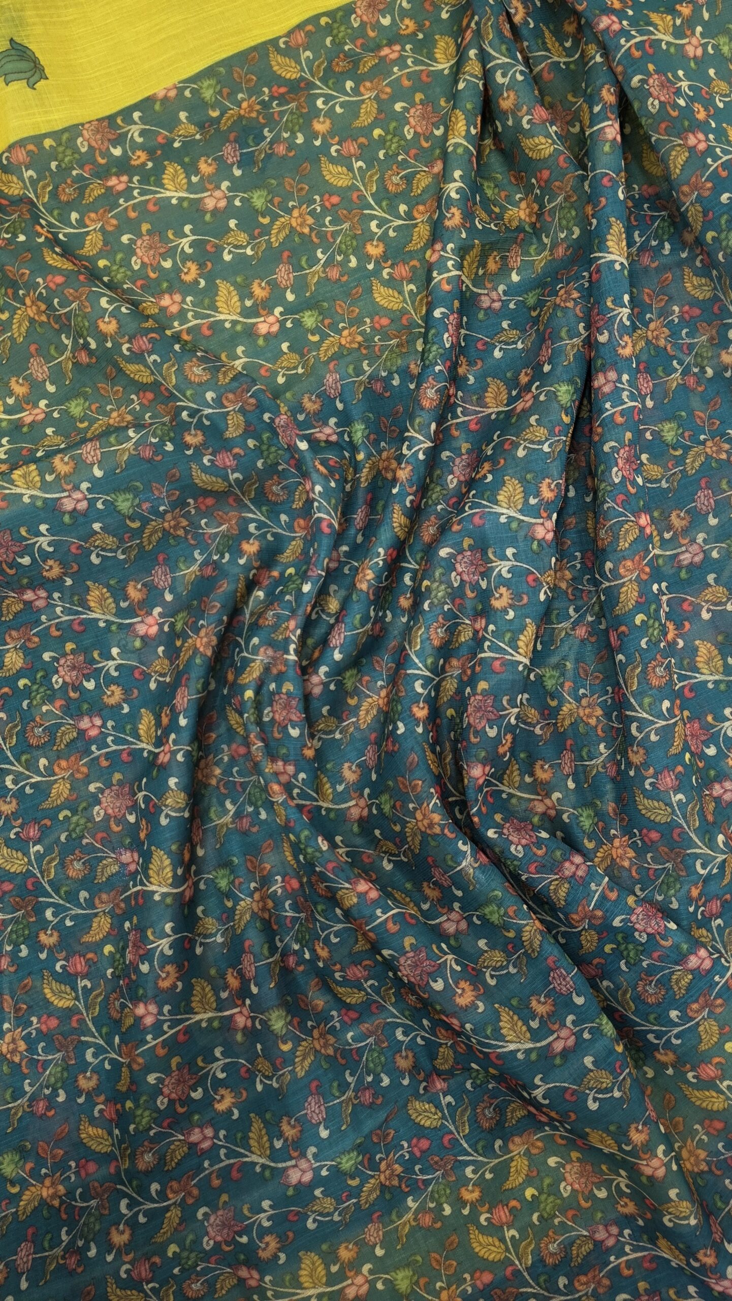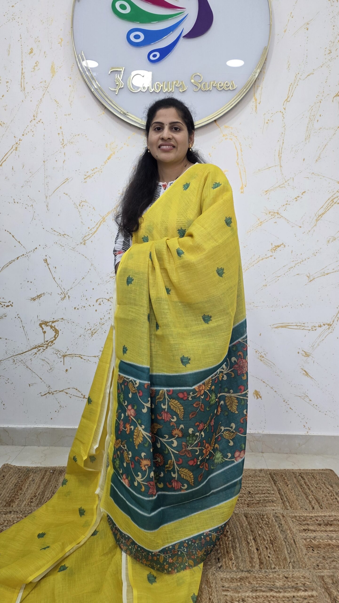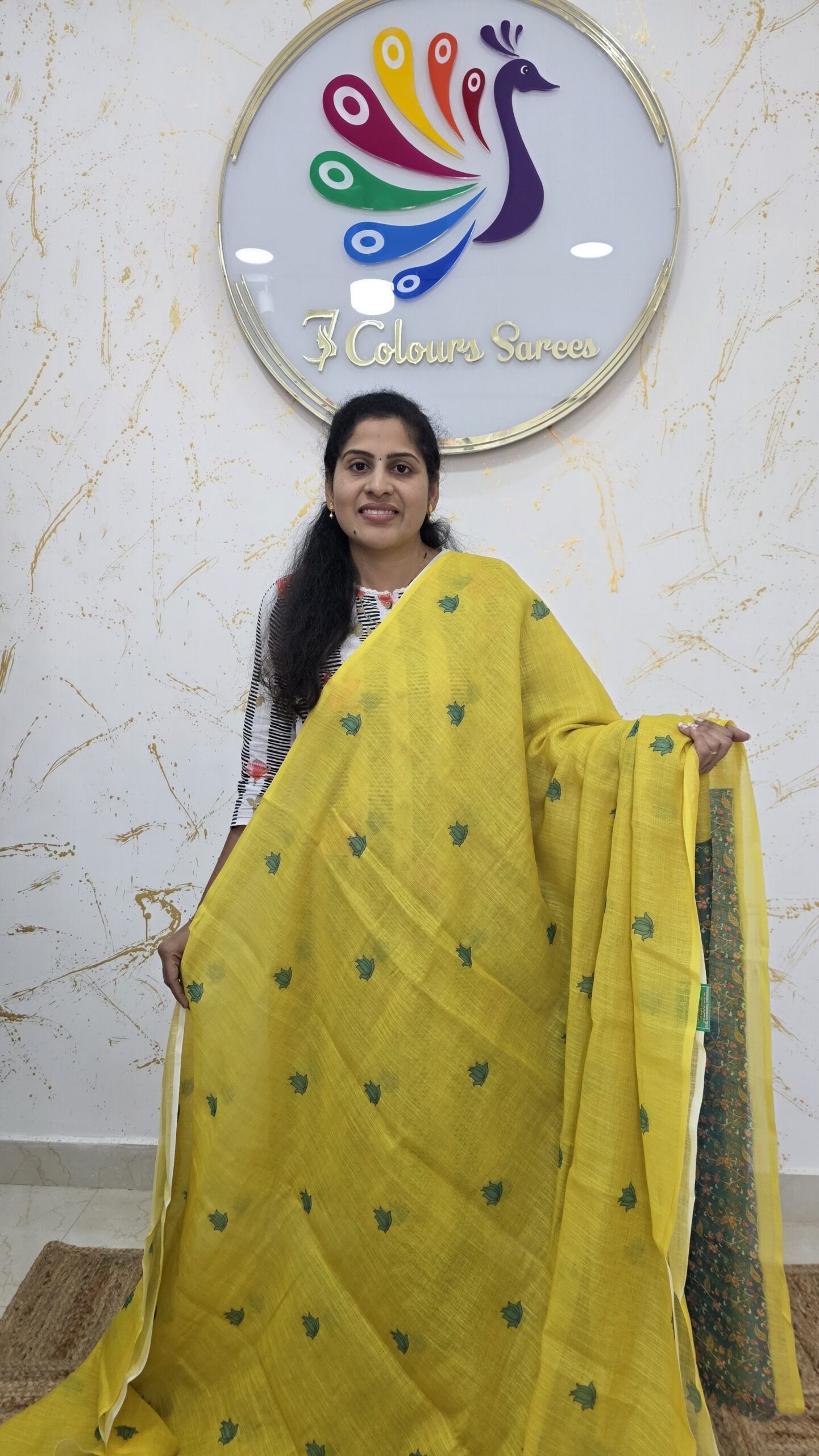 Bright, elegant, and effortlessly graceful, this sunshine yellow saree is a perfect blend of tradition and contemporary charm. Crafted in a lightweight, breathable fabric, the saree features delicate peacock motifs woven across the body, symbolising beauty and grace. The subtle texture adds depth while maintaining a soft, flowy drape that is ideal for long wear.